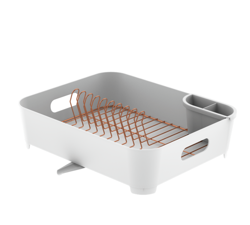Seu design inclui uma grade interna em aço removível, com capacidade para até 10 pratos. O porta-talheres removível, também feito em plástico, oferece conveniência adicional na hora de organizar a louça. Além disso, o escorredor possui um bico móvel para a vazão de água, que facilita sua utilização.