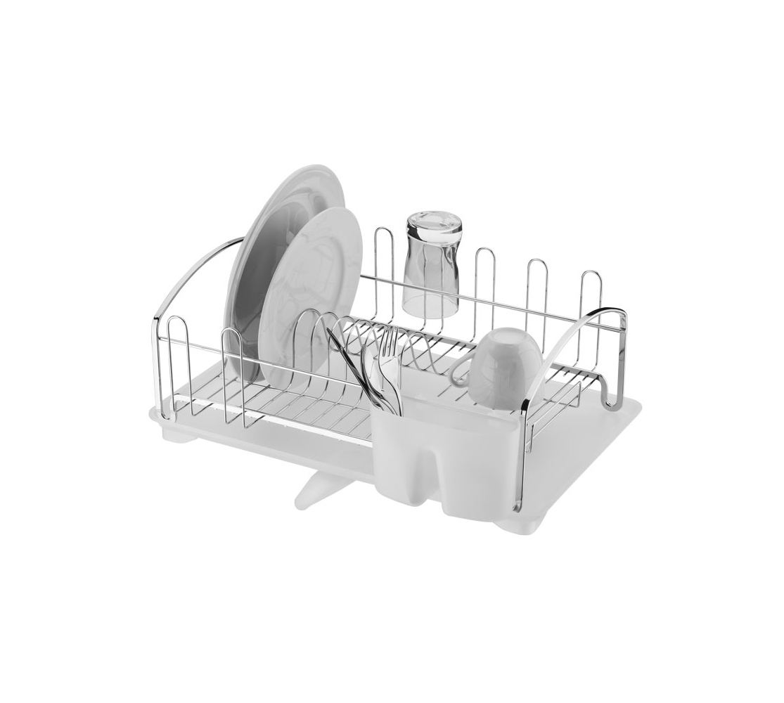 O kit perfeito para manter a pia seca e limpa: Escorredor de Louças com Bandeja. A bandeja tem bico abre/fecha para facilitar a vazão da água. O escorredor tem capacidade para 10 pratos e 8 copos e porta talheres é plástico e removível.