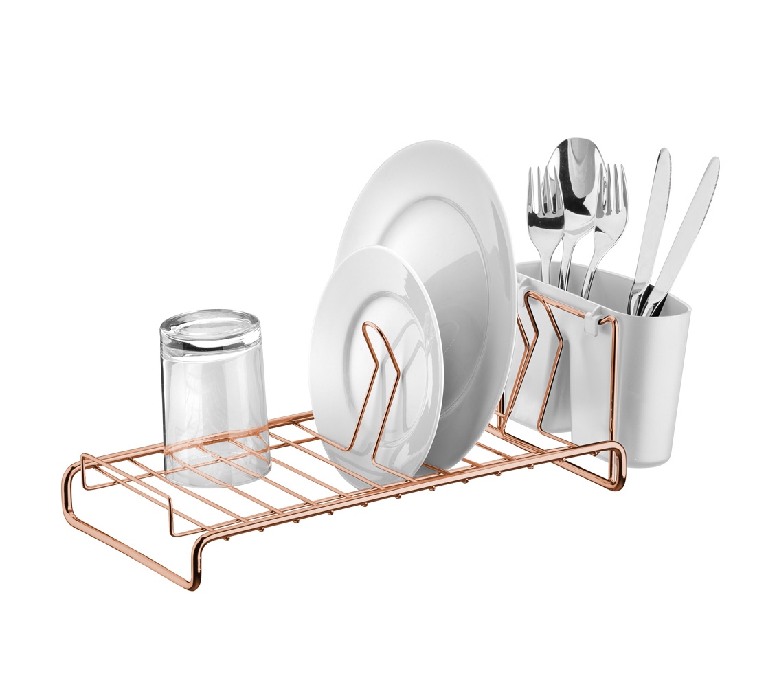O Escorredor de Louças Compacto é ideal quem mora sozinho ou para quem tem pouco espaço na pia, mas que não abre mão de manter a cozinha limpa e organizada. Nele cabem 5 pratos, copos e talheres. Suficiente para a louça do dia a dia.