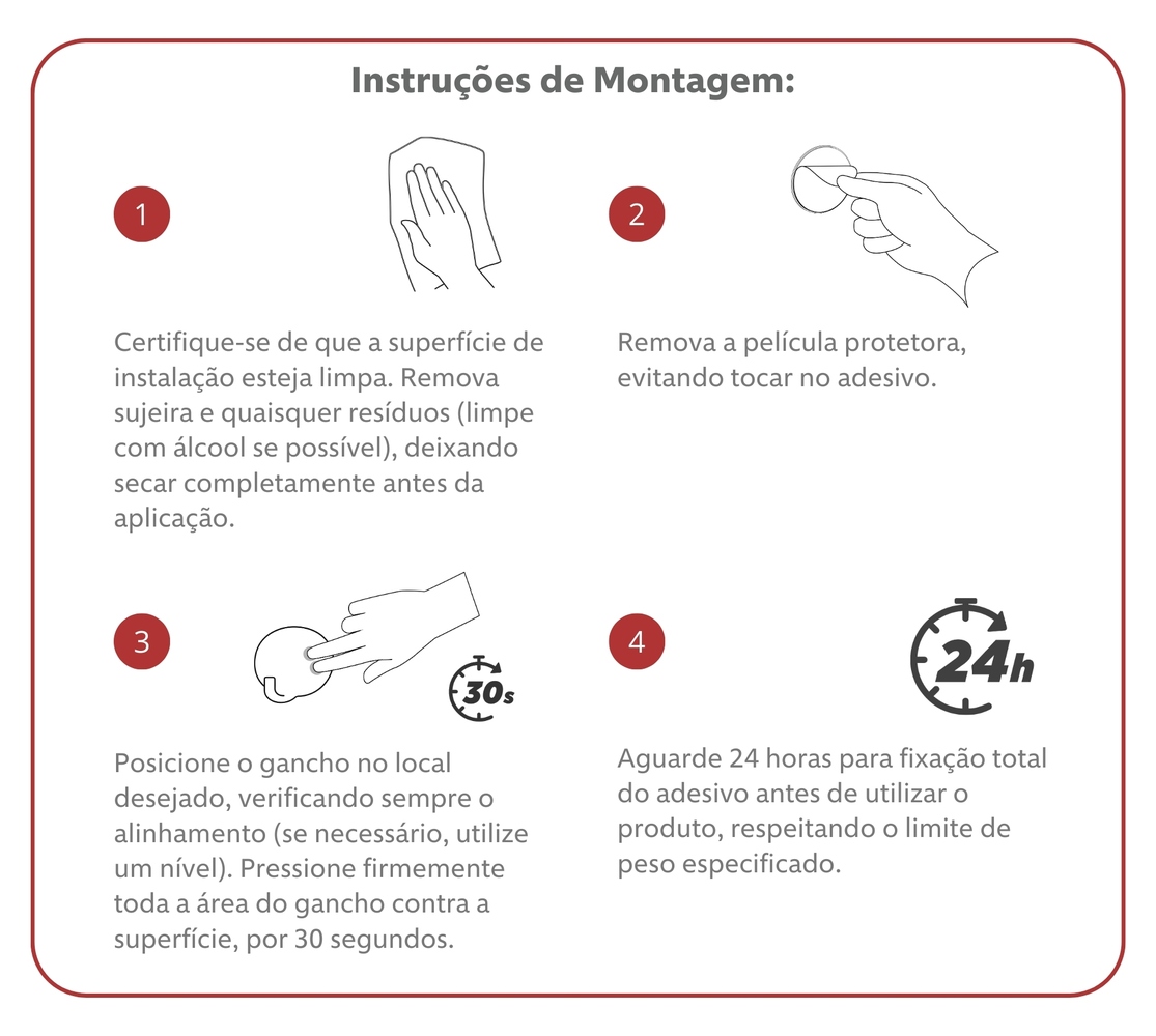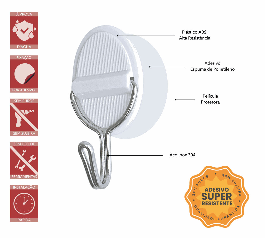 Com fixação por adesivo super resistente, é a prova d'água, dispensa furos e ferramentas garantindo praticidade no dia a dia.
