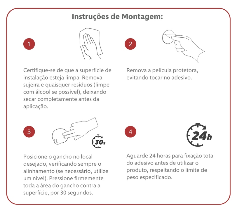Cada embalagem contém 6 unidades, perfeita para distribuir a organização por diferentes pontos do ambiente.Instalação: