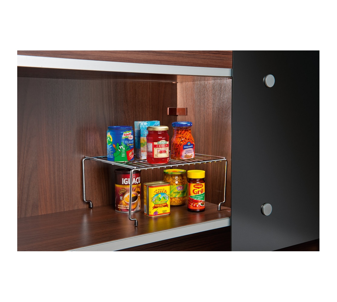 O organizador componível cria uma prateleira que permite o armazenamento de produtos em espaços antes não ocupados. Tem a possibilidade de empilhamento, desta forma você pode compor níveis. Versátil, este organizador pode ser utilizado na cozinha, no quarto ou na despensa.