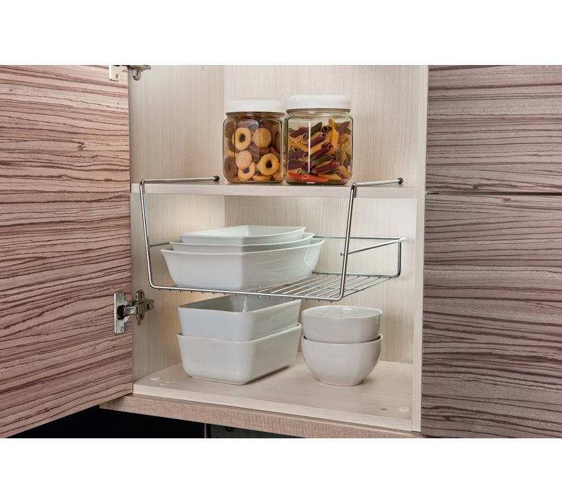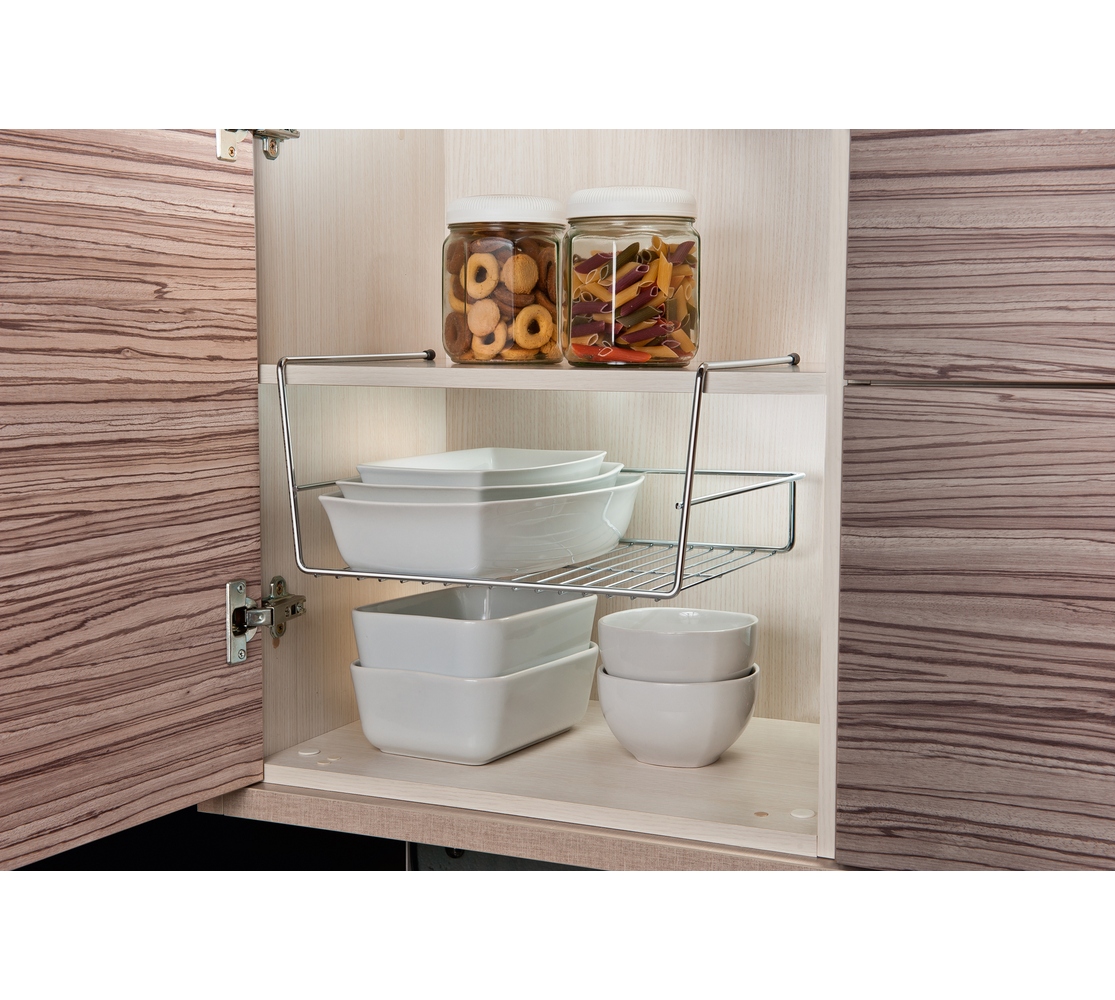 O gavetex aramado é ideal para a organização dos mantimentos no armário ou para manter as louças em segurança. Ele cria uma gaveta suspensa aumentando a área útil e armazenando produtos em espaços antes não ocupados.