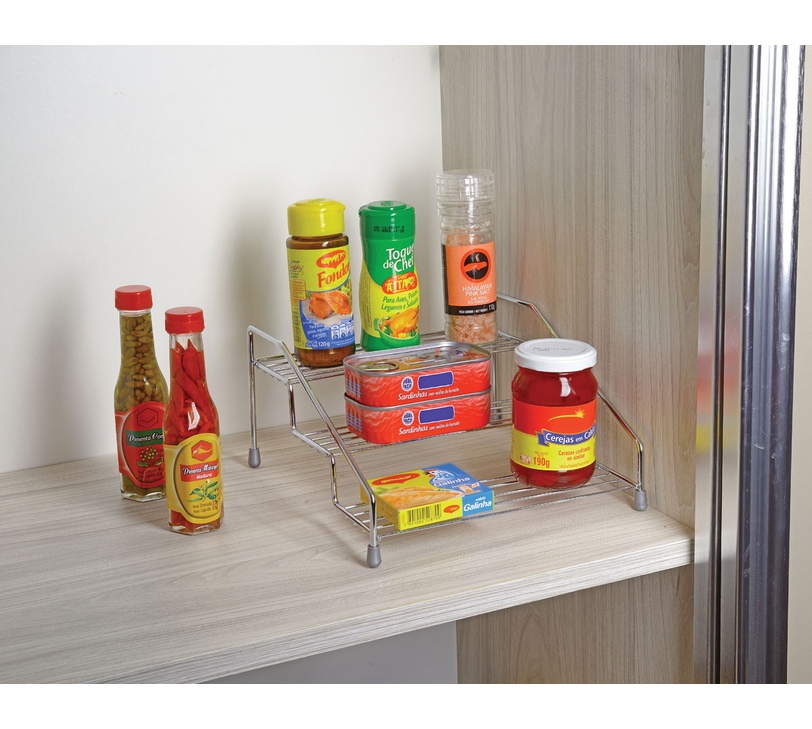 O Organizador de Armário Triplo é ideal para armazenar condimentos pois possui prateleiras em formato de escada. Desta forma é possível visualizar todos os itens facilmente, evitando desperdícios e deixando tudo sempre à mão.