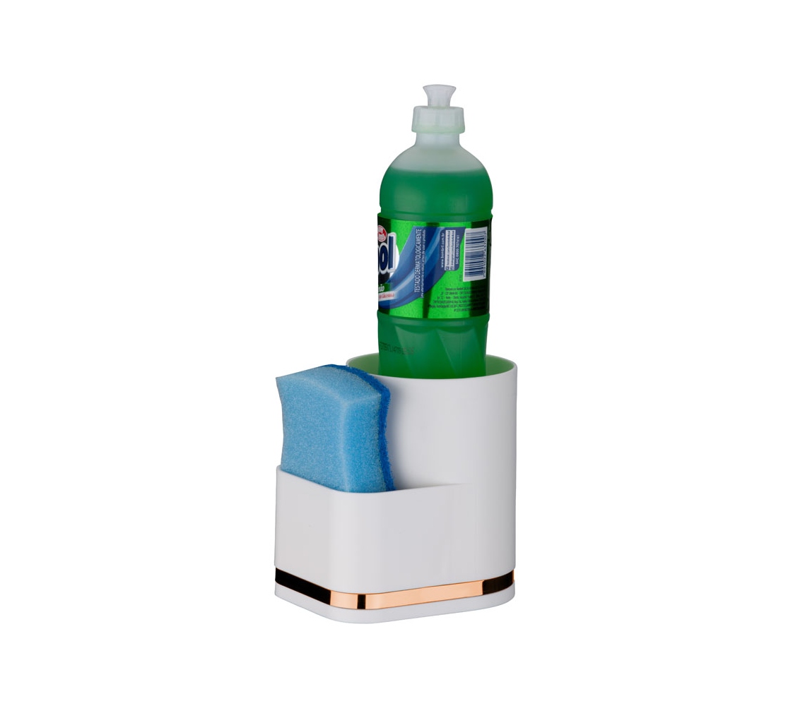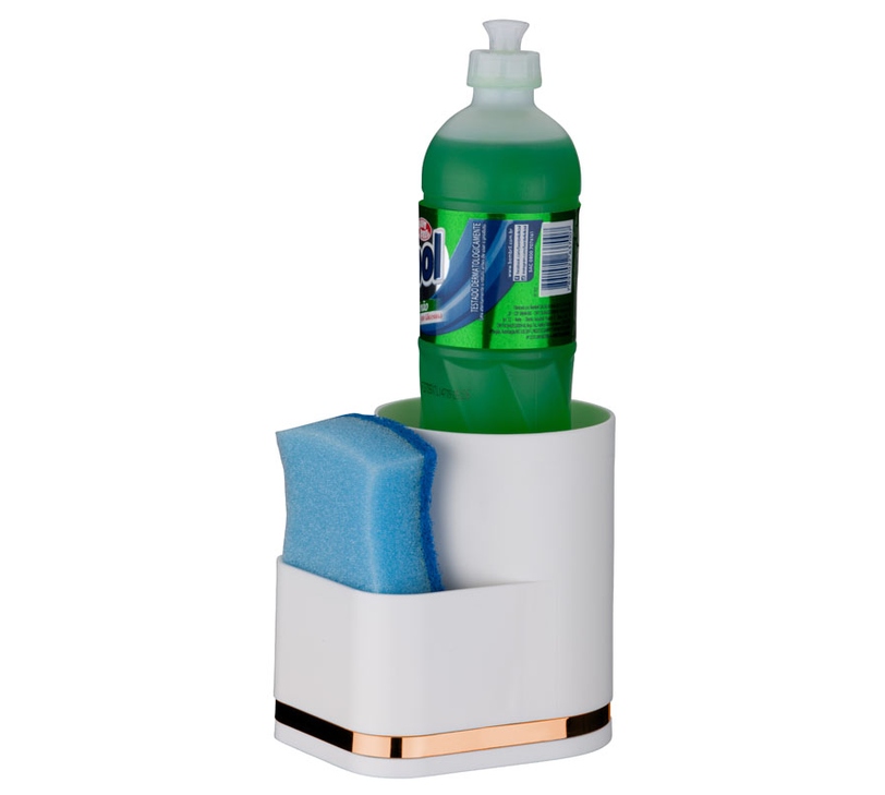 Com o Organizador da Pia você tem o que é necessário para lavar a louça ao alcance das mãos. Tem capacidade para armazenar 1 detergente e 1 esponja. É fabricado plástico e conta com detalhe em aço (aço em formato achatado).