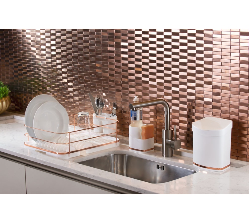 Organizador De Pia Branco - Rosé Gold