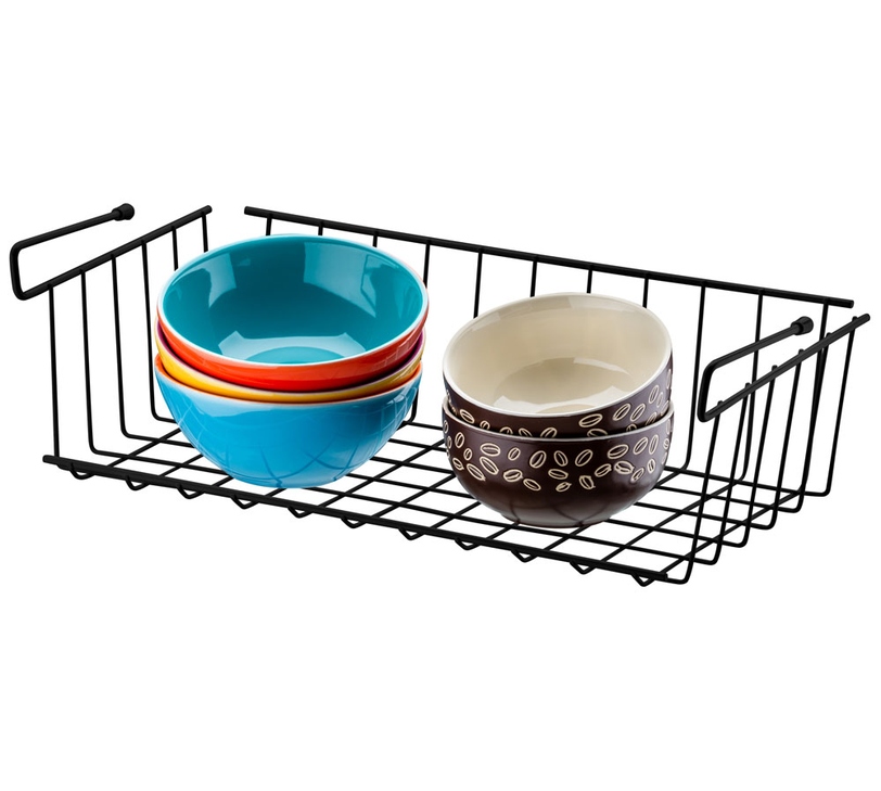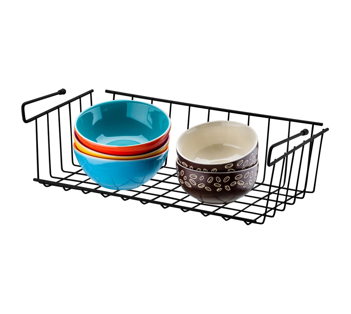 Armazene louças, alimentos e outros objetos com segurança e sem risco de queda. O Organizador cria uma gaveta suspensa abaixo da prateleira, ocupando aquele espaço que é perdido no armário.