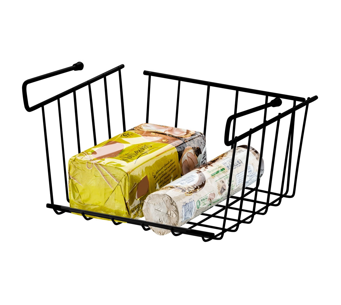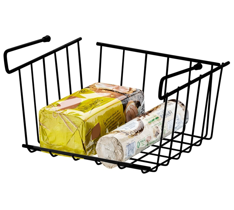 Armazene louças, alimentos e outros objetos com segurança e sem risco de queda. O Organizador cria uma gaveta suspensa abaixo da prateleira, ocupando aquele espaço que é perdido no armário.
