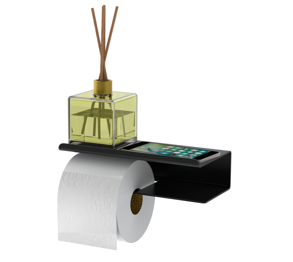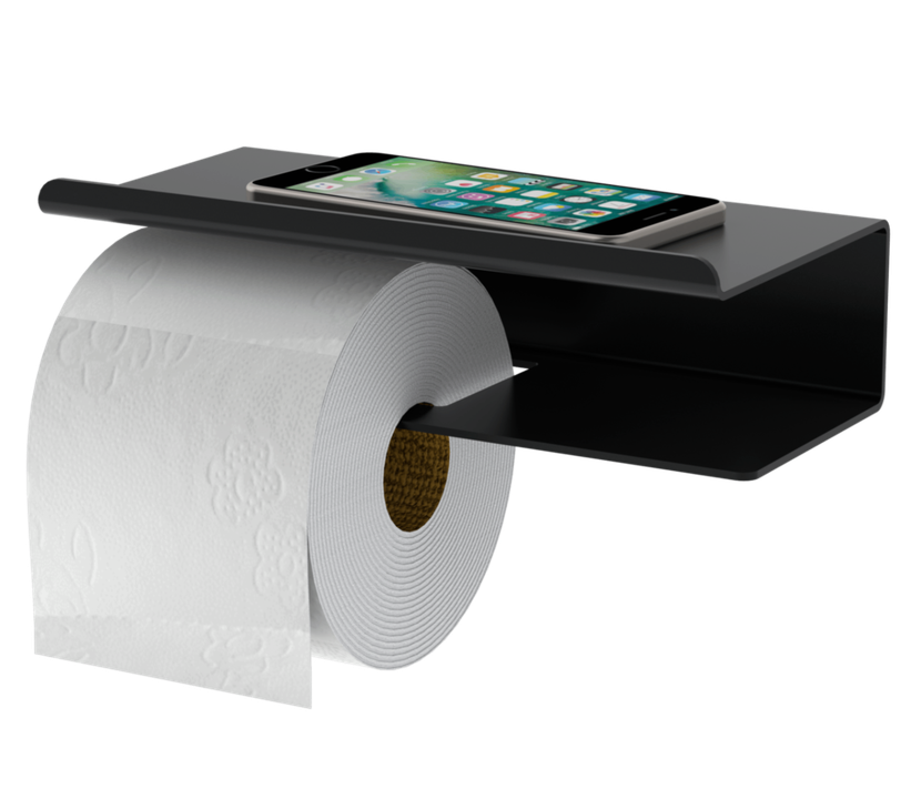 Suporte para Papel Higiênico e Porta Objetos - Preto Fosco