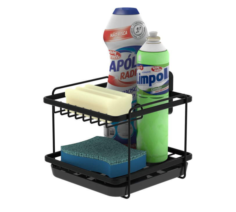 Suporte para Sabão / Detergente / Esponja - Preto Fosco