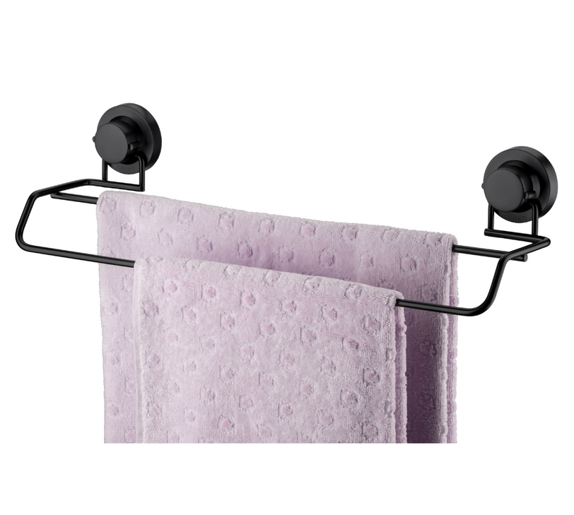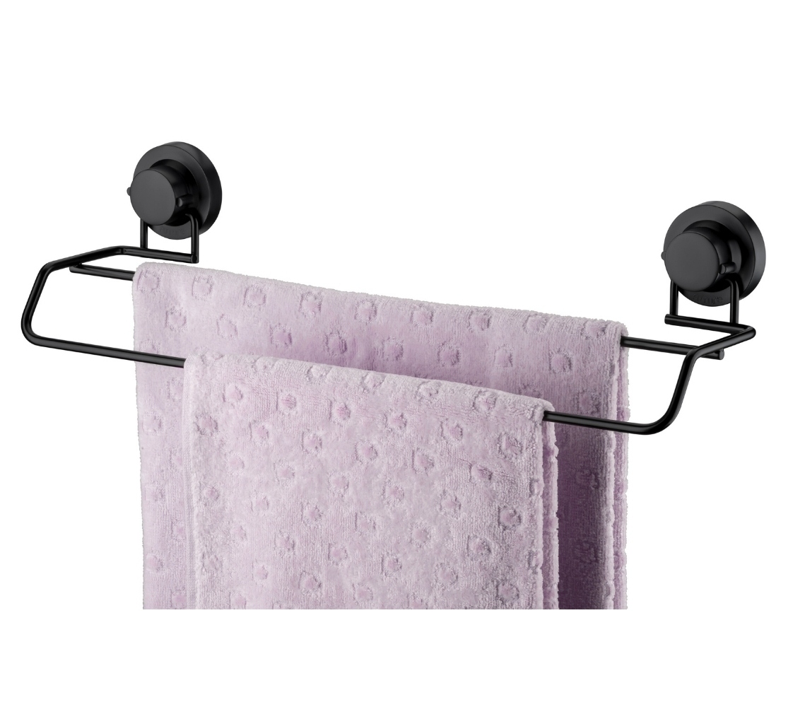 Toalheiro Duplo 45cm com Adesivo - Preto Fosco